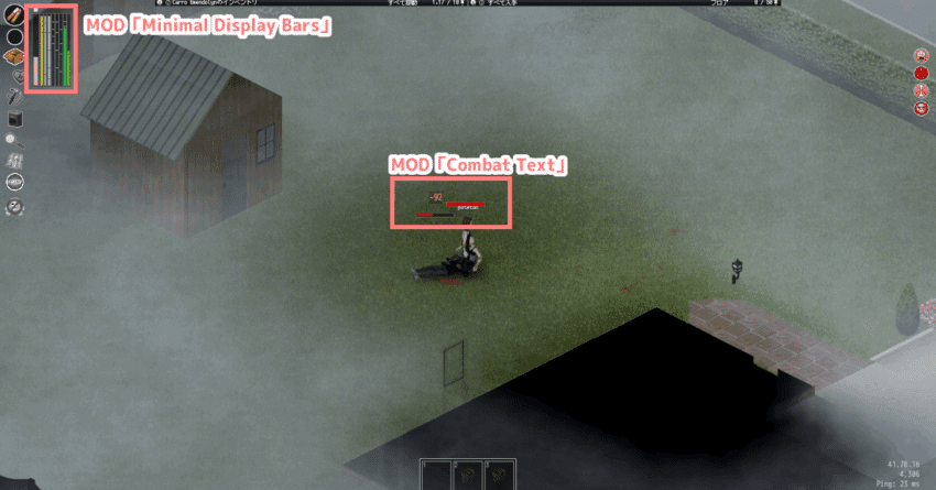 今回は、自身の体力バーを表示する「Minimal Display Bars」とゾンビの頭上に体力バーとダメージ数を表示する「Combat Text」を例に進めたいと思います。(他のMODでも導入手順は同じ)